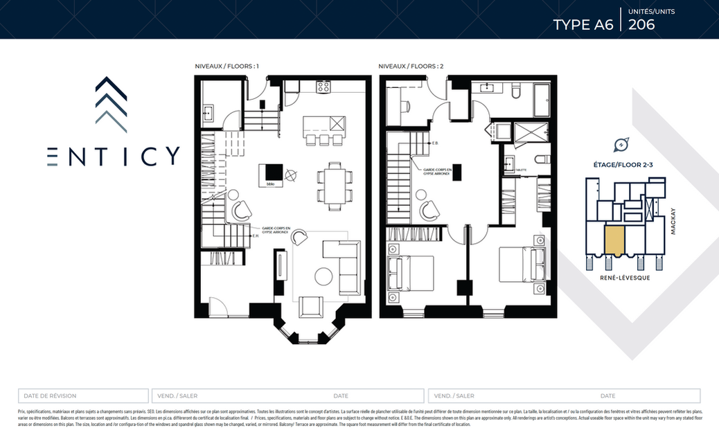 Moderne et raffiné, Enticy est un édifice de 24 étages situé sur la rue McKay au cœur du centre-ville de Montréal, qui se distingue par son design architectural unique. Inspirés de l’élégance des hôtels-boutiques, ces condos lumineux allant du studio aux 2 chambres, offrent une vue spectaculaire sur l'horizon montréalais et le fleuve Saint-Laurent. Bâti autour de maisons ancestrales du XIXe siècle, couronnées de fausses mansardes d’inspiration Second Empire, Enticy crée un dialogue harmonieux entre histoire et modernité.